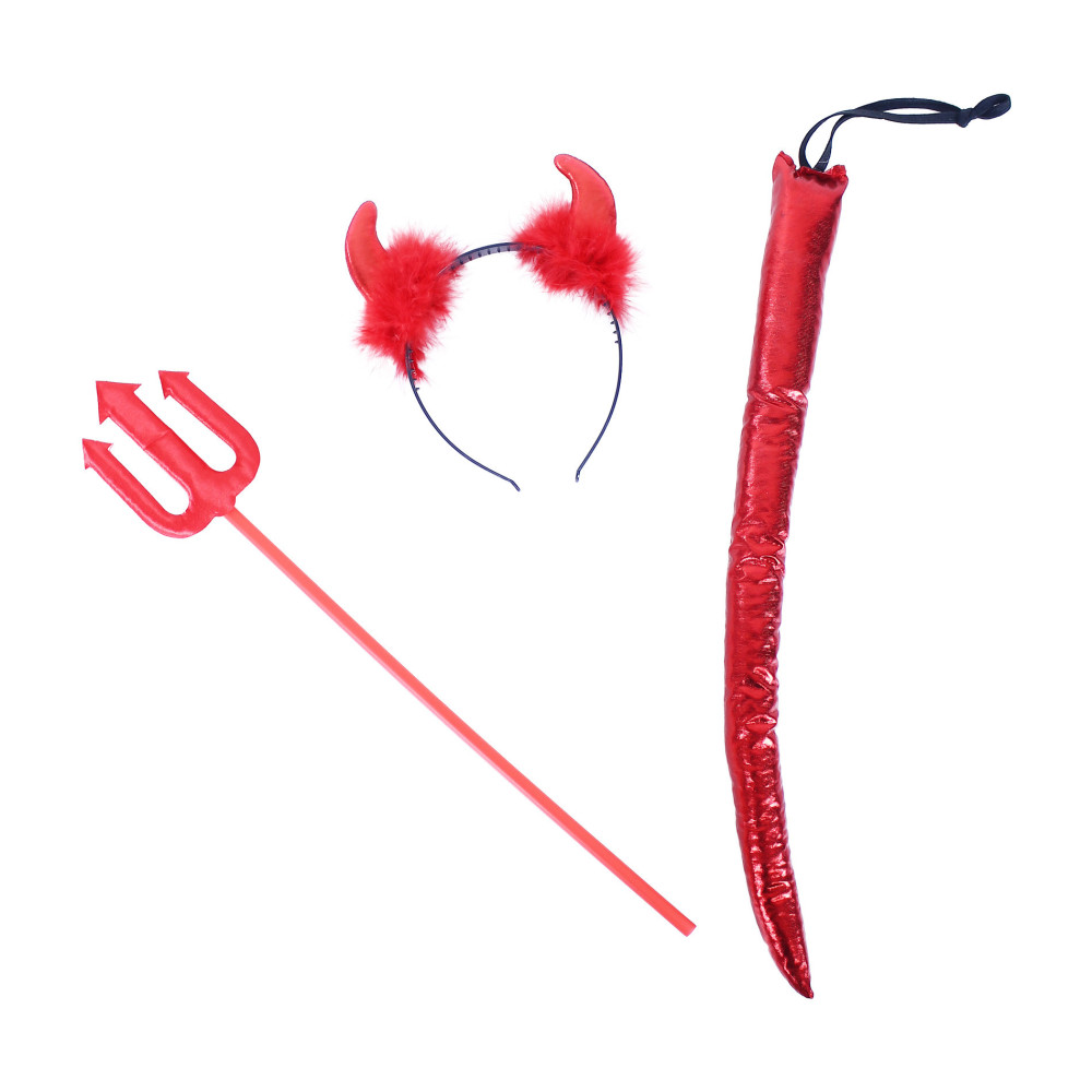 Sada čert, čelenka s rohy, ocas, hůlka