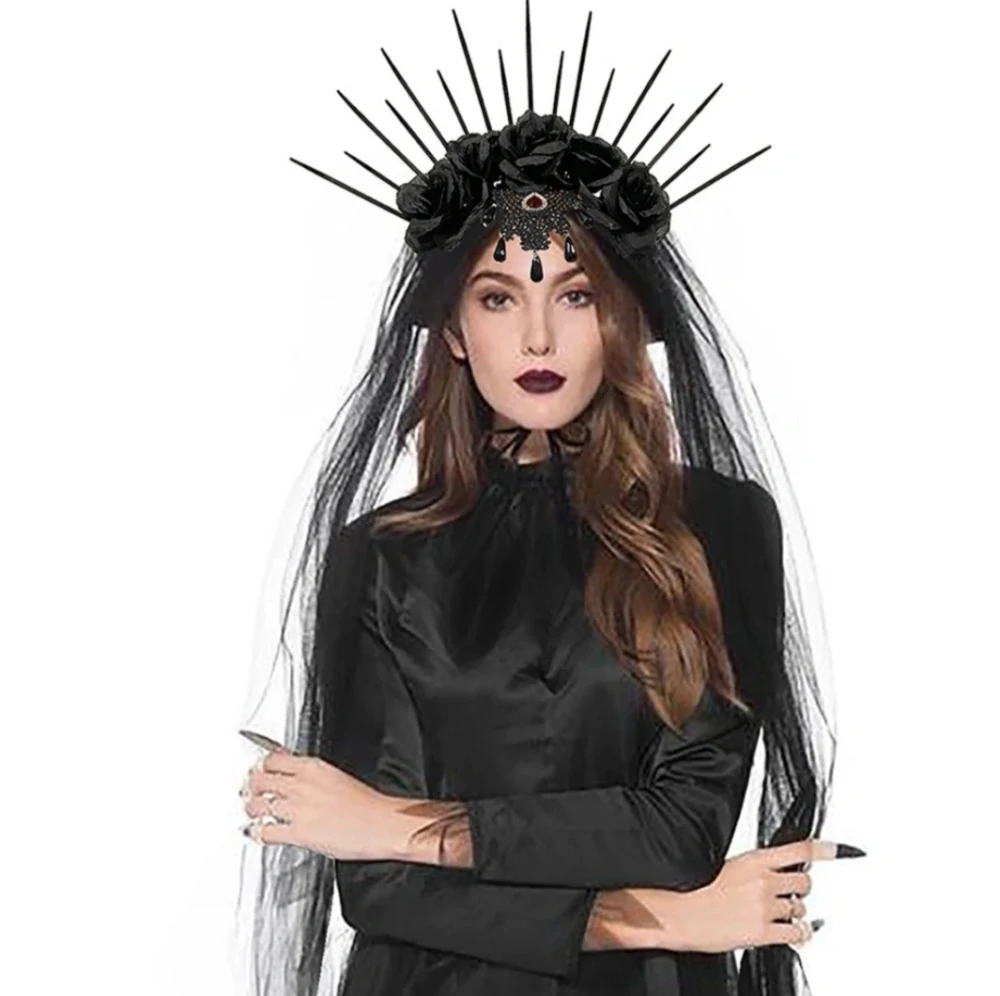 Čelenka s květy a závojem čarodějnice halloween