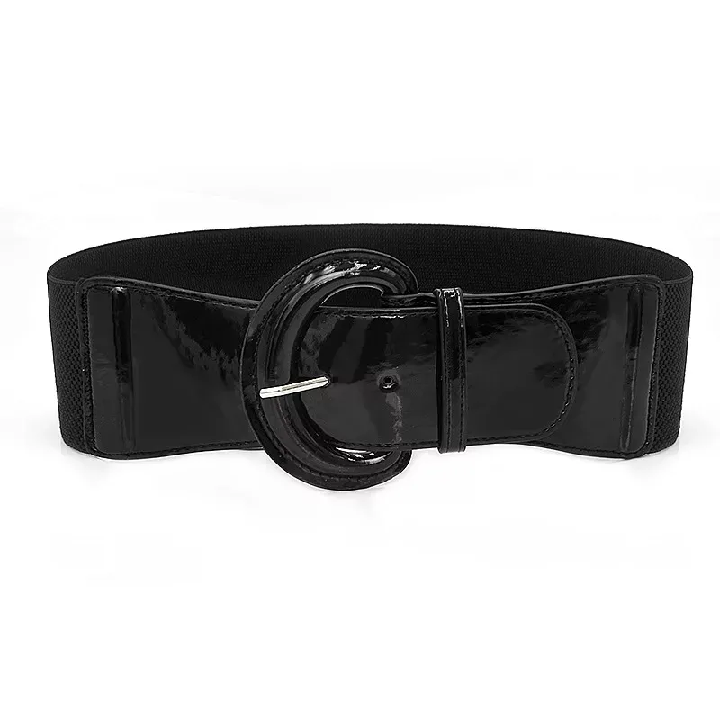 Opasek černý se širokou sponou. Opasek je strečový